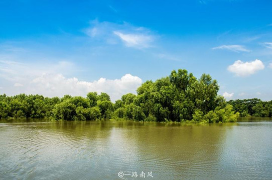 南沙湿地公园四季常青,春夏两季最青翠。游船前行,海风徐来,满眼绿意盎然,映衬蓝天白云和袅袅碧波,仿佛走进爱丽丝漫游的绿野仙境。
