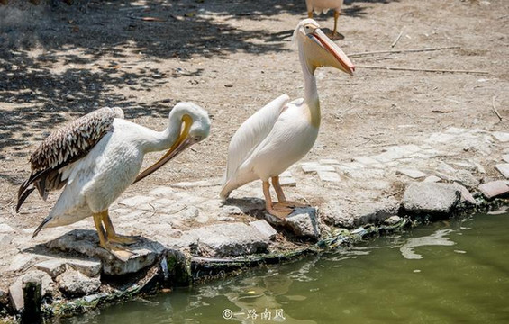 南沙水鸟世界生态园包括雨林岛、花树岛、金银岛等六个小岛景区。沿着小道前行,过桥、穿林,沿途邂逅各种珍稀鸟类,包括白鹈鹕、各类鹦鹉、孔雀、鸳鸯等。白鹈鹕,主要繁殖地在欧洲东南地区,越冬的时候多出现在亚洲西南部和非洲。这种水鸟有个长长的嘴巴,张开时可以夹住食物,方便它们捕鱼。白鹈鹕似乎见惯了生人,我们的到来,完全没有影响它们悠然自得的生活状态,其中一只白鹈鹕还上岸和我们互动,几个同伴排队和它合影。