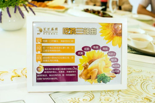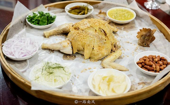 游览结束,当然要品尝一下景区餐厅出品的葵花鸡宴。葵花鸡具有皮黄、皮脆、脂肪少、维E高、肉质甘香、胸肉鲜嫩的特点。白切的葵花鸡入口有种清凉感,咬一口,满口留香,不愧是网红名菜。