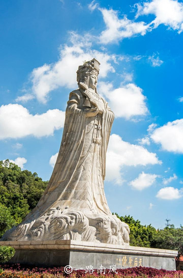 南沙天后宫的标志性景观是耸立于天后宫广场正中位置的天后圣像,从前、后、左、右和高视角欣赏,这座圣像都优雅有气势。资料显示,天后圣像的高度达到14.5米,霸气慈祥中透着仙气。天后是谁呢?为什么在我国东南、华南沿海,乃至世界上很多国家的近海区域总是可以看到天后宫呢?