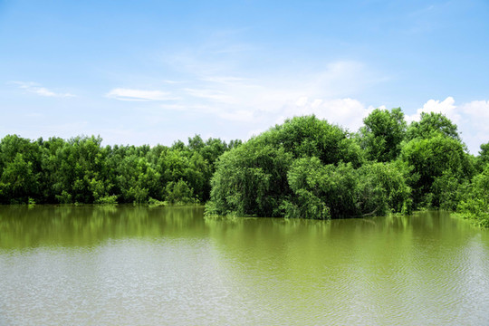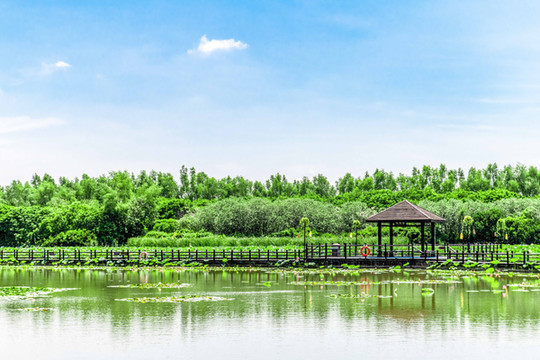这么好的湿地环境,当然会吸引无数鸟儿们在这里栖息啦。一片片清澈俊美的水源,在茂盛的植被映衬下,成了鸟儿们的天堂。他们或在这里引亢高歌,或在这里低声细语,总之快乐的很。而且这里天很蓝,云很白,一团团软绵绵的,再加上袅袅碧波,眼中呈现出了诗情画意的意境。晴空万里,微风不燥,身在优美的自然风景里,随手一拍就是大片。
