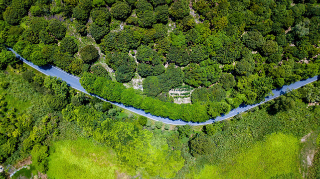 一条窄窄的分支把黄山鲁从中间隔断,水道好似一根银线装饰着树木葱茏的公园。现在已然到了伏天,天气炎热地让人焦躁,可是一走进黄山鲁,那种天然的清凉感扑面而来。公园道路两旁栽满了参天大树,枝桠把刺眼的阳光都遮蔽起来,只为留下荫凉。所以夏天来森林公园玩一点都不热。植被覆盖率高,树木的呼吸作用让公园内的生态环境质量也会大幅提高,空气自然就会变的清新宜人了。