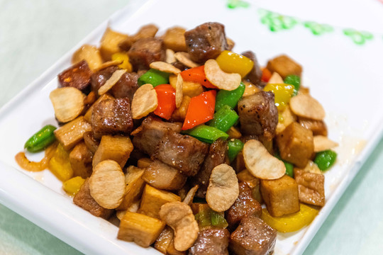 走在广州南沙繁华的街道上,问起当地人最喜欢的美食,十个人之中有九个都会回答干炒牛河。干炒牛河是广东家喻户晓的小吃之一,不管是聚餐吃饭还是喝酒宵夜,都少不了干炒河粉。干炒河粉看起来是一道十分简单的菜,但是想要做得正宗并不是一件简单的事情,它十分考察粤菜师傅的功底,古格雅阁酒店餐厅的干炒河粉绝对称得上是一绝,上色均匀,芽菜爽脆,牛肉够入味却不失嚼劲,河粉不粘不散,这样的干炒河粉让人吃了一碗还想来一碗!
