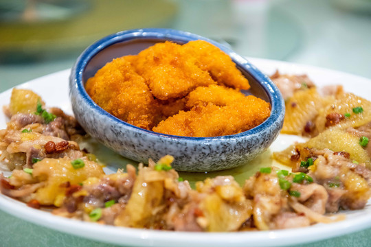 荷芹淮山炒鲜瑶柱,是一道南沙特色的菜。南沙的海鲜数量极多,品种丰富。清炒出来的荷芹与淮山还保留着脆脆的口感,瑶柱虽然是海鲜,和时蔬一起炒时一点腥味都没有,这实在是一道收获所有人芳心的菜品。