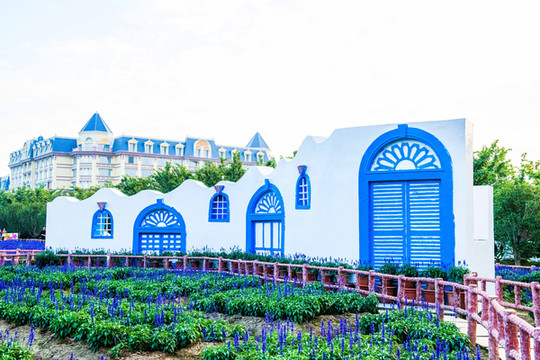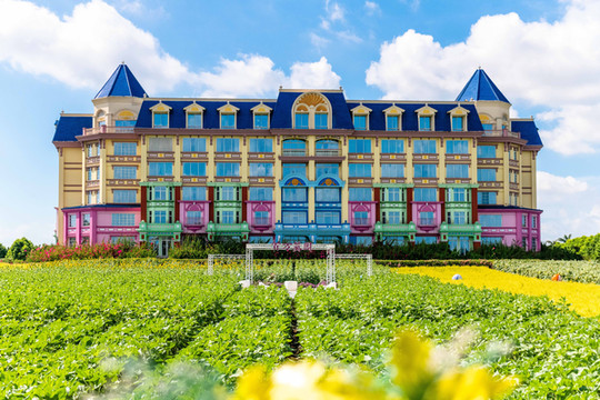 百万葵园的四季彩虹十分有特色,它是典型的日本北海道富良野景观,每个季节都会有不同的花卉争相开放,而正对着四季彩虹的是花之恋酒店,这座酒店是庄园式建筑,色彩斑斓,造型和四季彩虹、蓝天白云相映衬,带给人一种视觉上的享受。四季彩虹景观内还修建了七彩火车,乘坐小火车穿梭在花海之中,来一场浪漫的奇幻之旅!