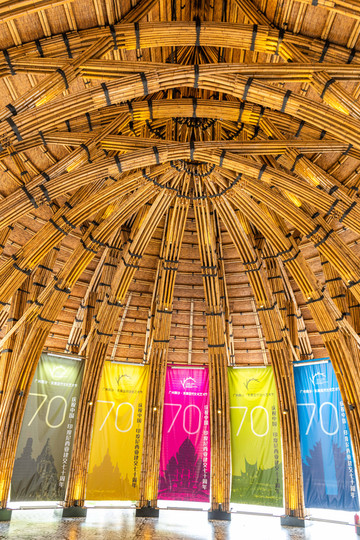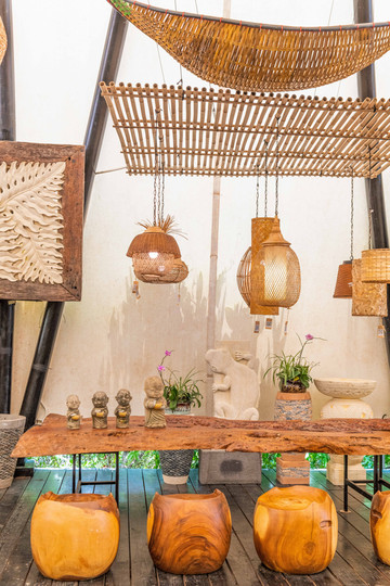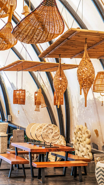 园中还设有休息场所,布艺和木艺的结合为休憩所营造了复古风的文艺氛围,喜爱打卡拍照的小伙伴们可以尽情地在此发挥自己拍照技术啦!竹编的灯从高处垂下,形状各异却不失风雅,木制的凳子已经被打磨的圆润光滑,桌子采用的原木保留了最原始的状态,没有过多的去修改形状,仅仅把尖锐的尖角等地方磨平,整体看起来像是不经意的把树林搬进来一样。除此之外,屋顶上悬挂了许多木制编制的箩筐,和椭圆形,方形等吊灯相互映衬,增加了空间的层次感。不得不说,水鸟世界连休憩所都这么的精致。