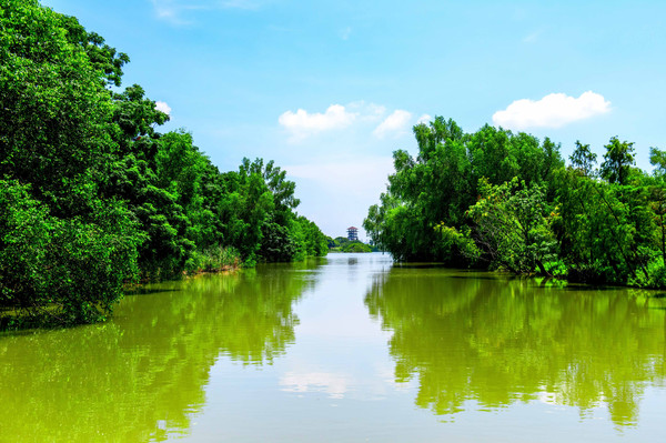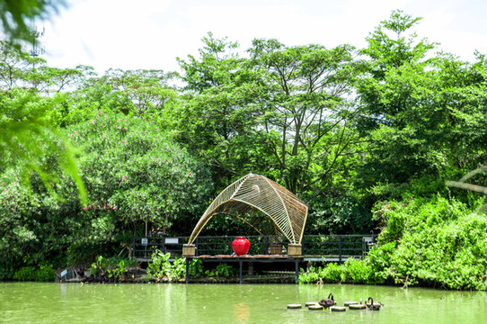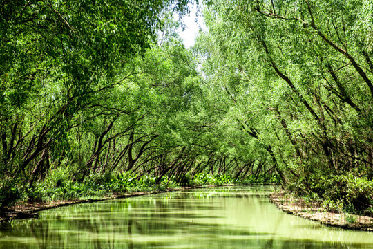 游船持续向前,慢慢驶出了美如仙境的荷花池,两岸开阔处仿佛有一座座绿洲浮于水面,紧接着开始穿越树林,树木的枝干像两岸中心舒展,可以阳光的照射,让人久久不想离去。三分钟的游程很快就结束了,在这里穿行的感觉就像在绿野仙踪中一般,十分有趣。
