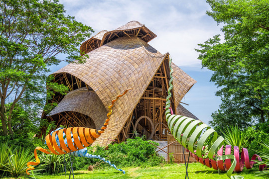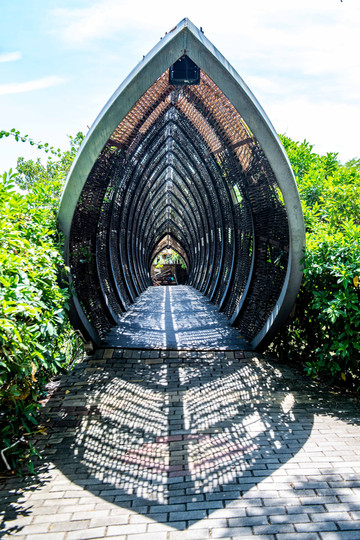 水鸟世界整体的风格是东南亚风,如果打卡发上朋友圈,不清楚的人还以为你在国外呢!入园便能看见四只“丝带鹤”,其实一共有八只鹤,但并没有分布在一起,所以只能先看到四只。这八只“丝带鹤”均由著名设计师麦生所设计,既融合了水鸟世界中主要动物-鸟的外形,又运用丝带飘逸之感打造出了水鸟曼妙的姿态。马卡龙色系的配色为这几只巨鸟增添了几分童趣,绝对是小朋友们喜欢的样子。
