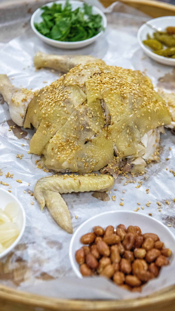 南沙百万葵园的葵花鸡有着清炖葵花鸡、雪花葵花鸡和白切葵花鸡三种做法,其中白切葵花鸡是代表,它保留了葵花鸡最原始的味道,没有加任何的色素和蘸料,尝起来鲜而不腻,口感极佳!