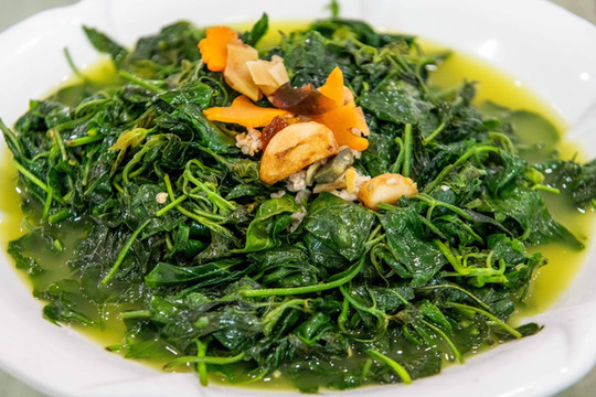 除了干炒河粉,古格雅阁餐厅的高汤白灼虾也是一大特色菜,白灼是粤菜最常用的一种烹饪方法,虽然看起来十分简单,但是它的烹饪十分讲究细腻和技巧,如果不是正宗的粤菜师傅,很难将这道菜做好。古格雅阁的高汤白灼虾是用熬制的高汤煮成,用最少的调料保留了虾的原汁原味,一口下去满是虾的鲜味,吃起来富有弹性,让人回味无穷,无法自拔。虾的做法有很多种,但是广东人偏偏钟爱白灼虾,看来不是没有道理的,来到古格雅阁一定要尝一尝!