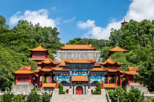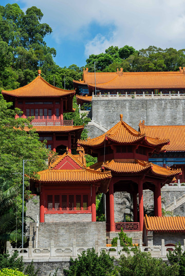南沙天后宫就坐落于广州市南沙大角山东南麓,宫殿宇阁楼依山势而上,建筑的特点则是集北京故宫的风格和南京中山陵的气势于一体。更值得说的是,天后宫的规模是现今世界同类建筑之最。清代宫殿式的建筑风格,庄严肃穆;层次分明的建筑特色,安静祥和,给人带来一种特别的亲切感。