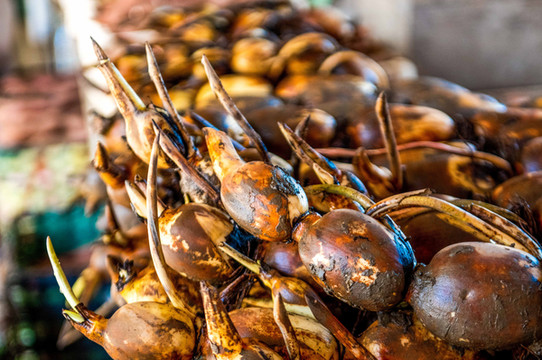 走过水果一条街便会来到特产街,这里贩卖的都是南沙当地的特产美食,其中红番薯就是当地的特色,尝起来清爽干脆,口感香甜可口。除此之外,夏天刚好是吃莲藕的季节,南沙盛产莲藕,尤其是新垦莲藕最为出名,它是由当地独特的地理环境孕育出来的。南沙大多数的农田都是湿地气候,土壤肥沃、富含钾,生长在这样优质的生态环境下的莲藕富含营养物质,口感绝佳。