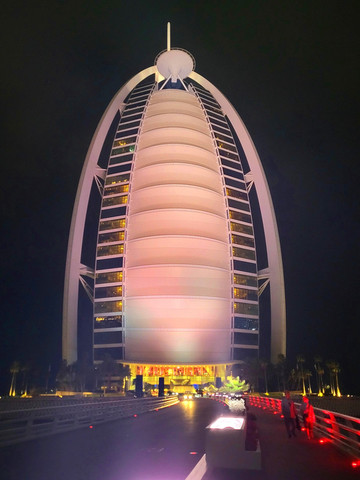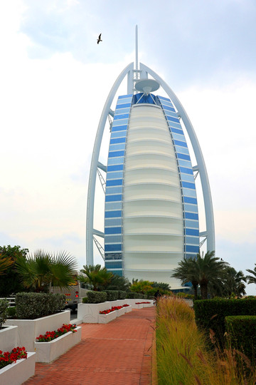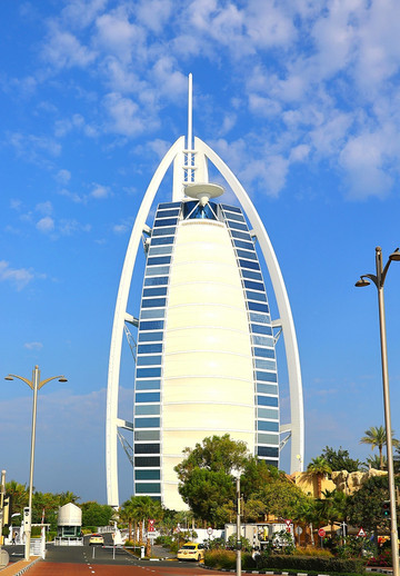 2、帆船酒店是阿拉伯人奢侈的象征,也是迪拜的标志之一。酒店建在离海岸线280米的人工岛上,一共有56层、321米高,外观如同一张鼓满风的帆。需住店或已预约消费的客人方可入内。