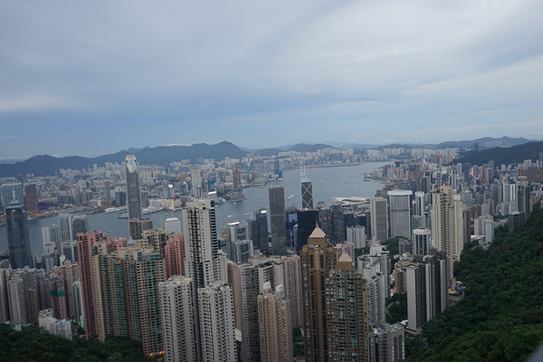 提前一天预定了太平山顶往返小火车,下午吃完饭就地铁出发了。路上见到了中环半岛的叮叮车,到达售票处依然是很多人,还近距离欣赏了外国友人参与抢位大战,被挤得七荤八素。到达山顶后,处于太阳落山后,黑夜没有完全降下来的时间段,趴个栏杆看看维港白天的景色,再等等夜色降临的灯火璀璨。顺便听听来自四面八方的游客口音,山东菏泽的,日本的,欧美分不清哪国的,小姐姐真漂亮啊。然后在下山高峰期又排队坐小火车了,一个小广场七七八八的绕了十几圈人,这次差不多也得等了一个小时,坐上后两分钟到达山脚。