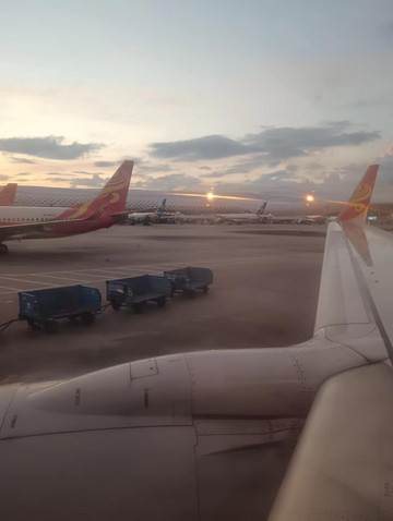 到达机场,托运行李,过安检,找登机口,看卫星厅,摸索机场行李推车,儿童推车,时间太早看不到飞机起飞,但是看到了攻略里机场过夜的小沙发,登机,看日出,跃跃欲试等待飞机餐,虽然真的不咋好吃,但还算顶饿,也真的扛不住冷,要了两个毛毯,看了两眼窗外的云层,睡了,飞机落地那一瞬间从睡梦中惊醒还是挺刺激的,给吓一激灵。