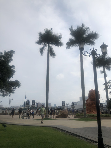 第二站,沙面岛,有很多特色建筑和百年老树,靓仔靓女们拍照,看着树底下成片的绿植,眼熟啊,那不是北方家庭悉心照顾的盆栽嘛,人家这直接种在大路边上。沿着江边公园有许多大爷大妈表演才艺,听着萨克斯,吹吹风,广州真的是一个包容性很强的城市,似乎我坐在这里,然后就慢慢生了根,就像是坐在老家的广场,亲切的让人迷糊,看到路边的椰子树才清晰的感觉到这里是南方。吃了附近711的盒饭,老人小孩回酒店休息。