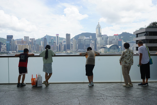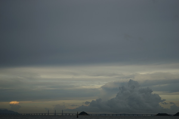 8月24日,出行以来的第一个雨天。估计是夜里下的比较大,早晨只是淅淅沥沥的飘着雨点。酒店退房,乘坐大巴从港珠澳大桥过关进香港,过桥时,天气很给力,右边天空开始放晴,可以透过车窗看到两边海景。入关地点离香港机场非常近,可以看到飞机起降,车上的小朋友非常兴奋。因为过关后的第一件事是冲向了厕所,所以强烈的感觉到了厕所的差距,干净无异味,而且厕所里备有厕纸,比起俺们小地方那是非常人性化了。