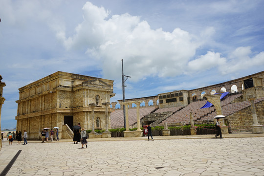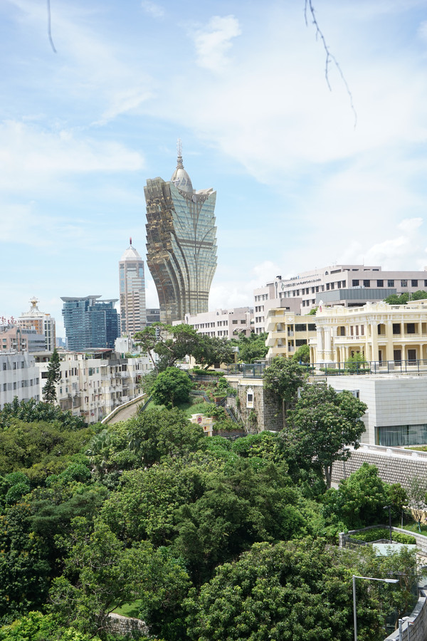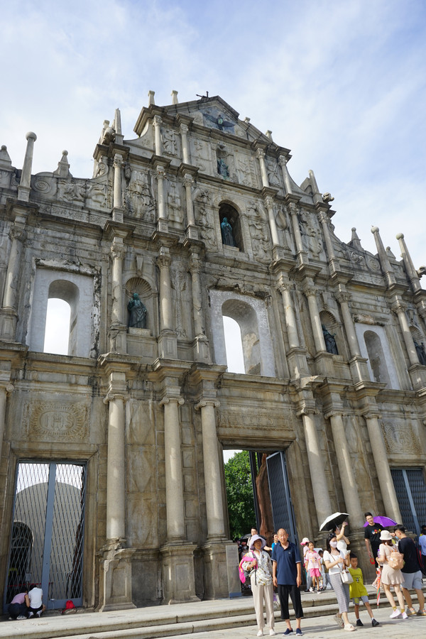 8月22日,酒店内准备好海关申报码,我们就直冲拱北口岸,过关澳门。因为从网上看到大三巴游客比较多,我们打算先去二龙喉公园坐缆车去东望洋塔,结果这个导航又开始了鬼打墙啊,怎么都导不明白,只好问了当地居民,还临时买了俩菠萝包换钱坐公交。然后有些尴尬的一幕来了,一位十三岁的山东小伙坐在了爱心专座上,上来一位澳门奶奶,说的什么其实听不懂,大概意思就是他不该坐,赶紧把小伙子薅起来给人让座,然后在下车的时候,另一位九岁的小朋友没能穿出下车的人群,公交车关了还没下车,吓得他奶奶在车下狂喊,并大声数落了这个小孩,给人整哭了。导航并不顺利,意外看到了澳门理工大学,不断的问路最后终于爬上了大炮台,然后又原路返回到澳门理工大学,来到金莲花广场,人群有些崩溃了,穿过地下通道,距离渔人码头五十米的位置歇着了。一个人跑到导航位置,澳门与内地果然不太相同,我就站在马路的对面,但是走到对面需要先走到天桥过马路再走回来,这太令人疲惫了,走回地下通道打算坐车去大三巴,结果人说坐车需要到金莲花广场那边的赛车博物馆,看着带了俩男孩建议去赛车博物馆看看,哈哈哈哈,结果人家周二闭馆,人管理员在马路对面直接给我摆手说不开门。