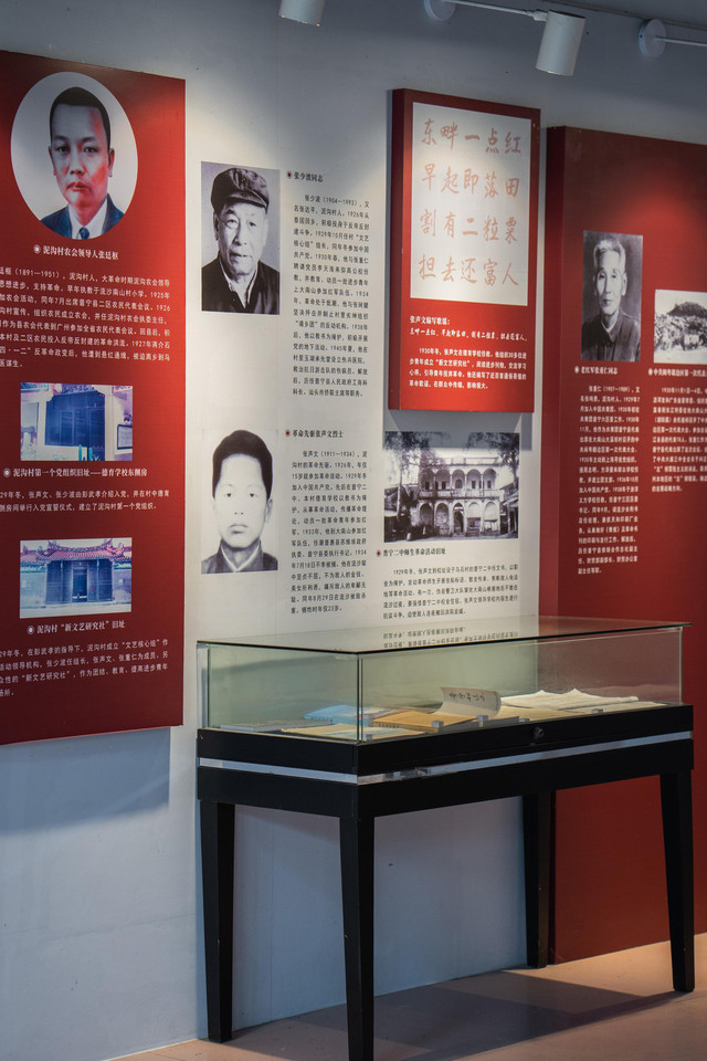 泥沟村于1929年建立了首个党支部,1935年开办了群众学校,并成立了第一个共青团支部,为培养大批革命先锋奠定了坚实基础。全村孕育了张声文、张声汉、张珂敏、张伯哲等21位杰出的革命先烈。 普宁县抗日救亡阵地和党组织革命活动据点旧址,即群众学校的所在地是泥沟村张氏族人的祠堂“九德祠”和“知本堂”,如今坐落于燎原中学校内,依旧保留着祠堂功能,展现着潮汕建筑的特色美学。