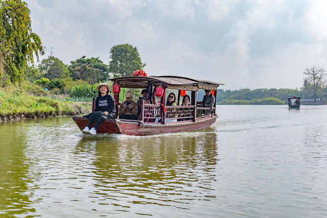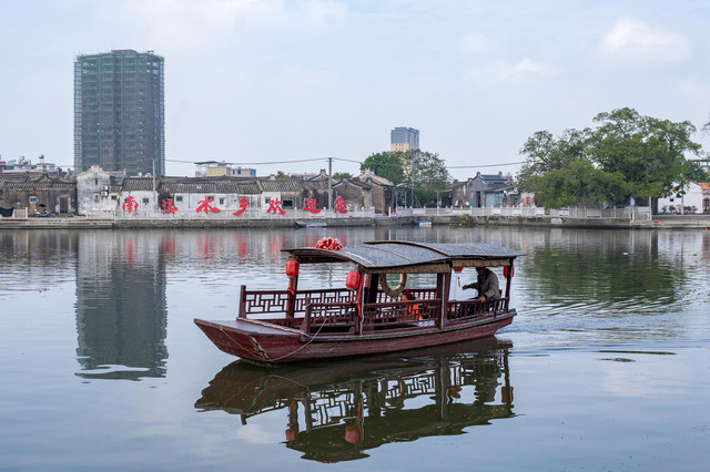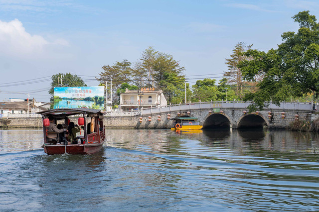 为满足游客观光游览需求,当地推出“泛舟南溪水乡”乌篷船水上观光旅游项目,游客从大港码头出发,在一个多小时的时间里,可尽情欣赏到榕江南岸的水乡村落、青山绿水,感受当地不一样的风土人情。