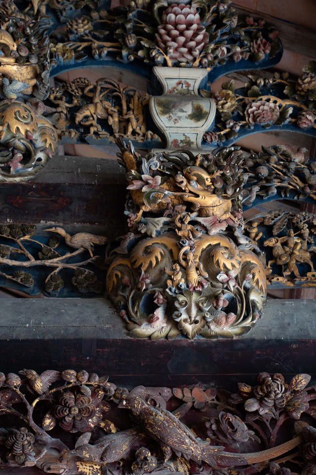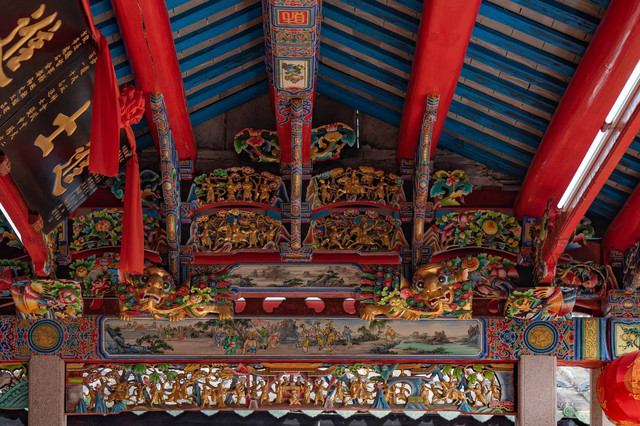雕梁画栋的陈氏宗祠,尽显潮汕传统祠堂的风格。祠堂布局为三开间两进一天井,砖木结构。祠堂是一个族群游子寄托故土乡情的所在,