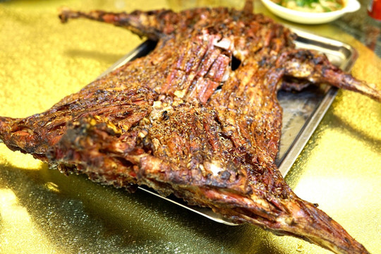 这里的烤全羊一直很有名,所以这次已经是第2次来了真的是慕名前来,如果要订烤羊的话,一般要提早打电话过来预定,他们先预热烤起来,当你吃饭吃的差不多的时候,烤全羊就可以上来了。这里的吃法也是比较野性,给你手套,给你刀,直接切一块块的狠狠的塞进嘴巴里,左右开弓的咬羊腿。如今这里已经形成了一种吃羊的文化。不过各位,我觉得夏天羊肉还是少吃一点,毕竟是冬天吃会更好。