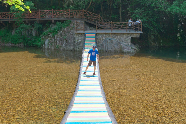 这个网红的晃晃桥现在人不多,如果人多的话一起晃起来也是相当的刺激,没有站稳的话就会掉在水里,引得大家哈哈大笑。