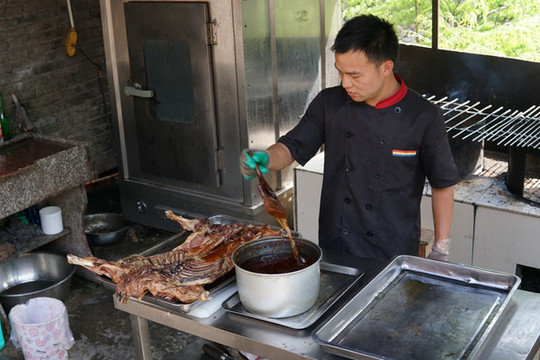 大厨们正忙着烤全羊了,好几天都在香气扑鼻中,整个村子整个村庄弥漫着羊肉的香味。在温州的永嘉这里,就相当于浙江杭州的余杭烤羊锅也是相当聚集,相当有名。今天去吃的时候,路的两边都停满了车,人满为患。