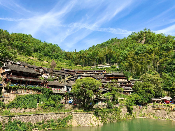 在永嘉境内散布着无数大大小小的古村落。它们给风景区增添了浓厚的人文气息,赋予楠溪江丰富的文化内涵,以及阴阳五行风水思想构建的楠溪江古村落,留存着大批完整的宗谱族谱。领上人家就是这么个地方,背靠着山面对着水,依山而建,层层错落。