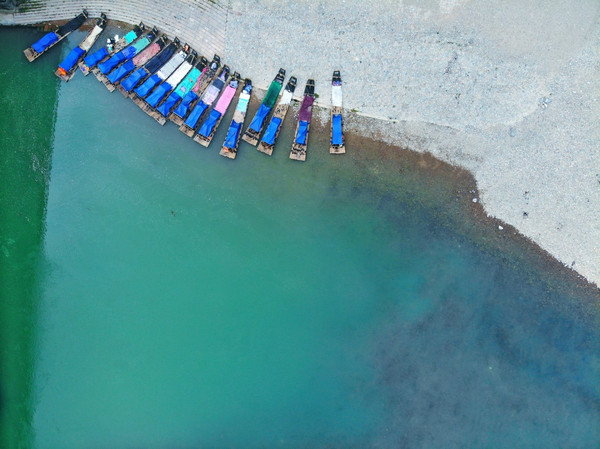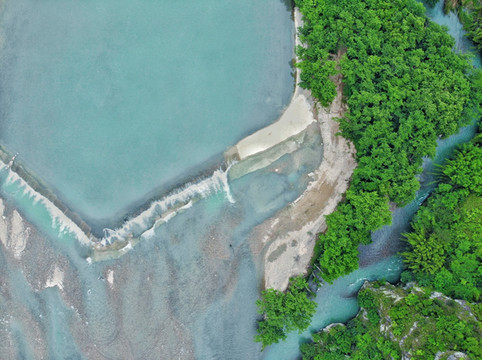 航拍的水档也是非常的好看,绿绿的,蓝蓝的