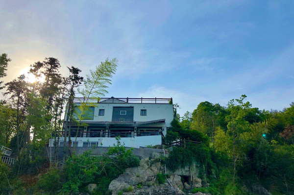 这是在漂流过程中看到一栋非常有特色的房子,猜想这栋房子应该是民宿吧,希望下次有机会能到这里去参观一下,能够住一天,感觉更好了,房间里落地玻璃窗,看着,漆上面竹筏飘来飘去。