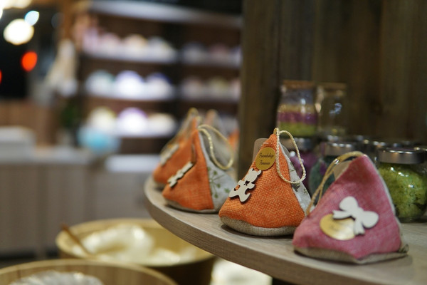 这是一家台湾和当地合资办的一个店面,专门用于成立台湾的一些文创用品,像下面这种肥皂里面加入了丝瓜烙,看起来当做摆设也是非常的好,非常的有特色,各种味道以薰衣草味为主。同时还有紫色的薰衣草熊售卖。