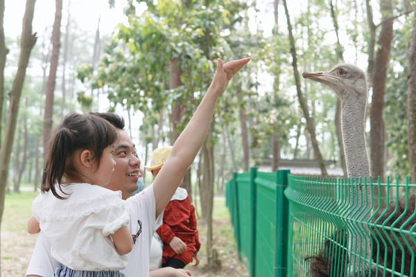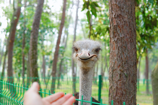 这里的树林长得非常的好,树干都是高高的,下面有各种可以活动的地方,这里就圈养的鸵鸟,其实它 胆子特别大,总喜欢跟人互动,不管你手里有没有好吃的。