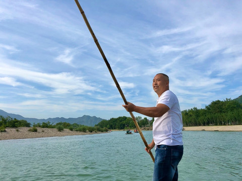 炎热的夏天来永嘉楠溪江小港溪漂流,来享受又放松身体又放松心灵的竹排漂流。周边白鹭婀娜的舞动,溪中小鱼游动,又浅又清澈的鹅卵石滩。现在也非常的推崇环保,一般的情况下都是用人工动力,遇到有逆风的时候,就用锂电池来驱动。让人坐的又舒服又安静。