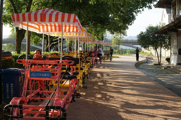 楠溪江边重新建了一个绿道,大概有8公里长,路修的弯弯曲曲,沿着溪水一直向前,在这个季节正是骑自行车游玩的好时间。