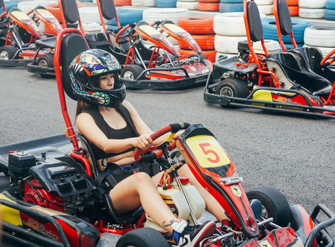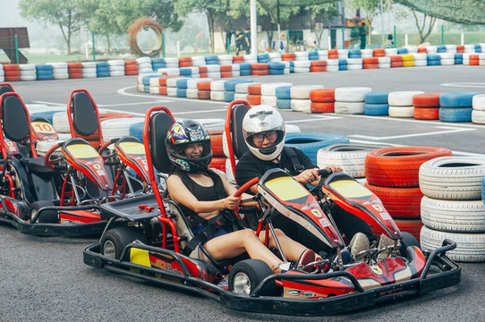 带上头盔还是很酷的,不过一定要注意安全,听到别的车从身边刷刷刷的过去的时候,还是有点慌,因为场地不是特别大,转弯的时候一定要小心,以免碰撞。
