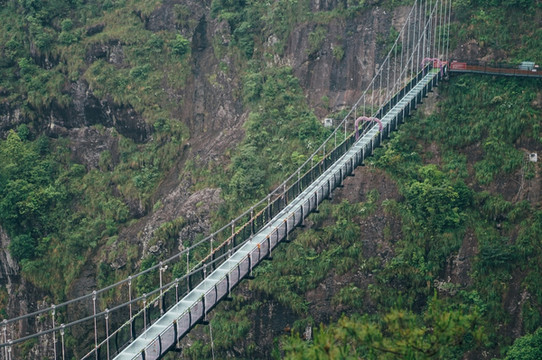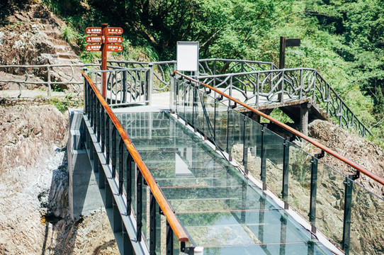 横跨两峰的9D玻璃天桥是 温州 首座9D玻璃天桥,具备声、光、炸、裂、音、效等多种特效为一体的9D玻璃天桥,全透明的玻璃,看着玻璃桥下就是悬崖,也是很刺激了。不建议有高血压、心脏病的小伙伴来玩哦。