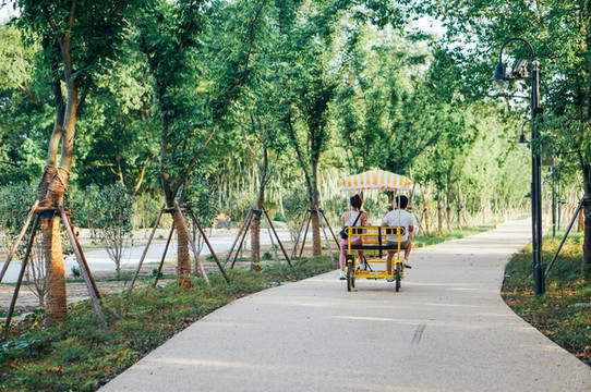 绿道是沿溪而建,是一条 新建 的道路,可以租一辆自行车,双人座,或者四人座,价格也不贵,慢悠悠的骑行,不仅可以锻炼身体,还可以欣赏沿途的风景。