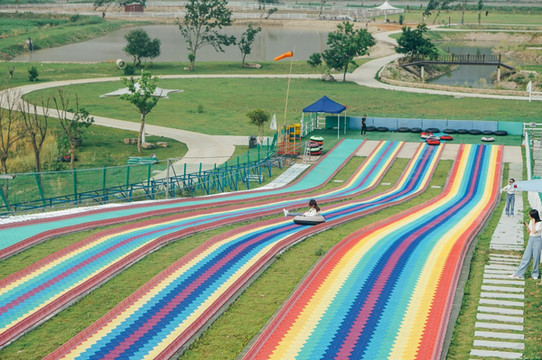 玩的人最多的还是这个七彩滑道,特别刺激好玩,工作人员会帮你放好皮圈,坐上去之后,被推下去的一瞬间可能会觉得有点怕,但是滑到一半就好了,还会想玩第二次、第三次~