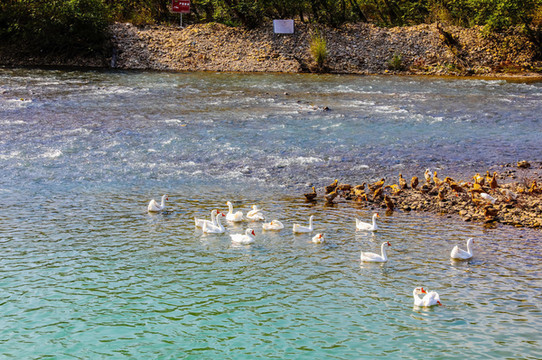 楠溪江 的美,美在形体,水长三百里,有36湾72滩;美在本质,水清,水纯,符合国家一级标准;美在和谐,以清流碧水为中心得滩林、远山、蓝天白云、原村等多层次的丰富景观,给人以“世外 桃源 ”般感觉。