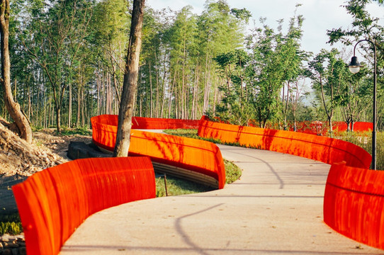 绿道旁边设置了护栏,只是这个颜色,却是有点点的扎眼。