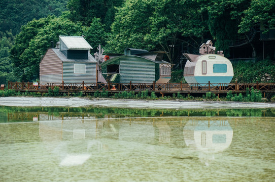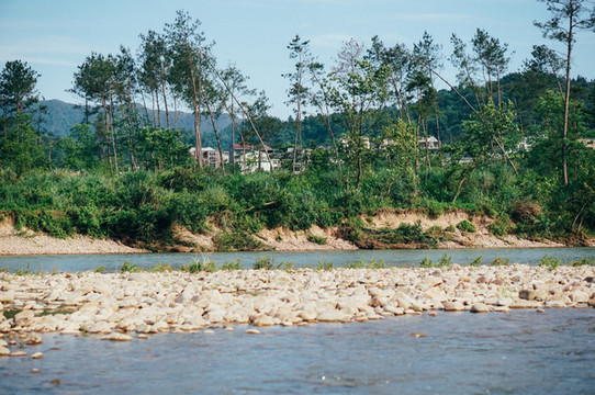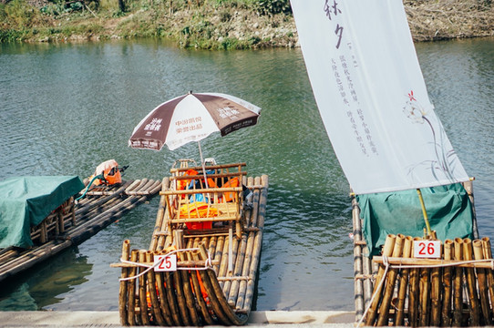 竹筏漂流起点是龙河渡,周围河床开阔,水流深浅适宜,沿岸滩林幽美,风景如画除了是放排漂流的最好去处。游人坐上竹筏后,赏两岸奇山、滩林、古村风水,戏清澈秀水,于周围自然同置于天地间,完全享受天人合一的境界。