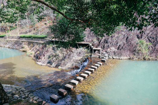 一走进去眼前尽是清澈的溪流,人们可以在这里踩踩鹅卵石,戏戏水,沿着溪旁的石子路,一直往前走,很快就会来到 永嘉 非常有名的“百米丁步”,它是由近百块石墩相间排成的,边上还有一座由数块石板拼接成的独木桥,桥下是湍急的溪流,如果走的太快可能会头晕。