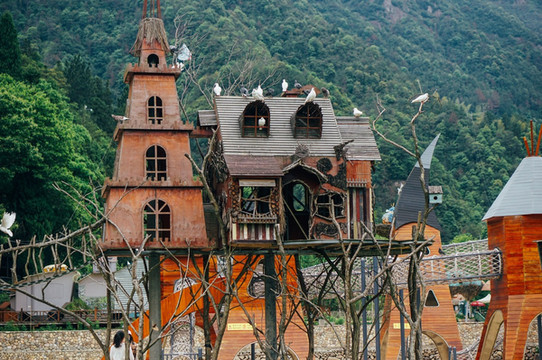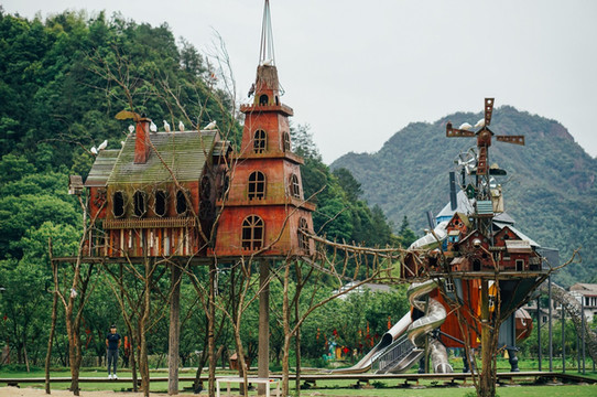 温州永嘉 的野鸽公园,像是现实版的哈尔的移动城堡,里面有树屋、魔法系列、流浪城堡等多个游乐项目。其中最具特色的是“魔法森林”游乐设施,主要是小孩子游玩的天堂,小朋友拿着“魔法棒”,可以体验3D特效,一路升级打怪。同时景区内也针对时下年轻人的喜好,打造了多个网红项目,如粉黛乱子草、紫藤花小径、印第安部落、白鸽教堂等。