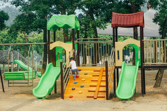 这里一般都是家长带着小孩子来玩,里面的游玩设施是专供小孩子玩耍的,里面也有大片的草地,可以野餐,搭帐篷,最好自己带一些食物入园。