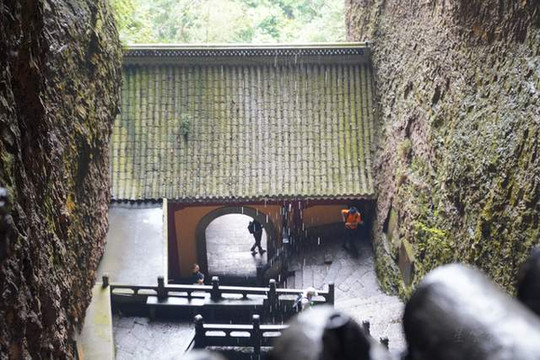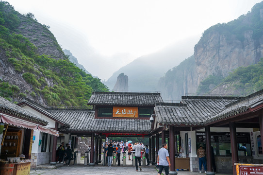 南阁古村不远处就是显胜门,雁荡山中称“门”的景点多达十几处,而以显胜门为最。显胜门两崖高耸两百米,两门相隔仅10余米,这种距离的束峙产生的效果至为强烈,令人头晕目眩,不能久待。素有“天下第一门”之称,两壁陡立,直上云霄,气势雄伟磅礴。