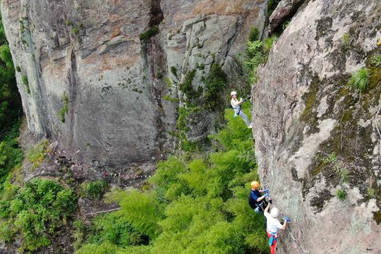 历奇探险飞拉达这种体验线攀岩,对于我们这种没有攀岩经验的人是友好的,攀爬的时候只感觉既刺激又辛苦,全神贯注,精神和身体上双重辛苦,但是下来后的成就感和持续紧张后放松会非常开心,还收获了航拍摄影师给拍的美美的照片。