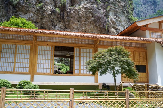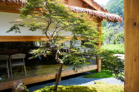 空间设计小巧而精致,孤寂而玄妙,抽象而深邃,背靠着林木葱茏的奇峰异石,佳景天成,可谓名山当户翠为屏。