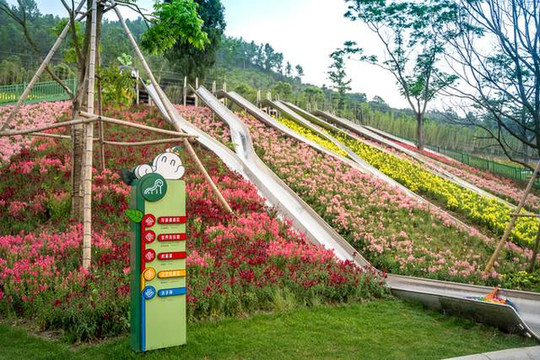 除了各种溜溜之外,园内到处是绿草和花海,游客们可以在此游玩,可以美丽养眼,美食养胃,乐活养心,还可以拍美丽的照片,真是悠闲悠闲。