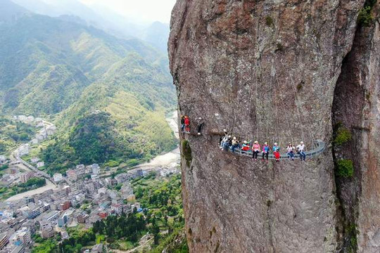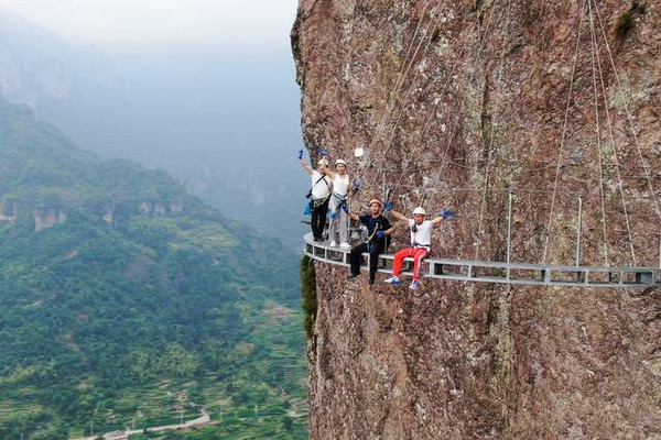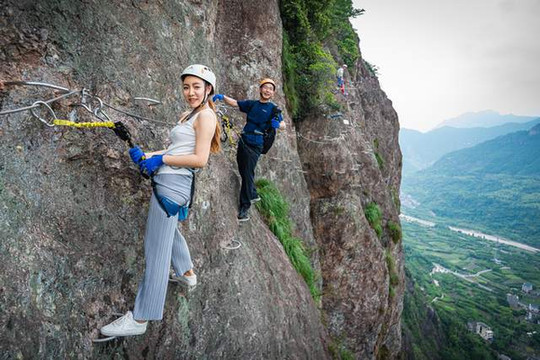 在200米高的悬崖上攀岩是一种什么体验?以前还真想都没想过,下午在雁荡山,已经五十岁的我和年轻人一同感受了冠以“亚洲第一险”的飞拉达,感到真是“刺激、历练、超脱。”